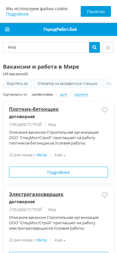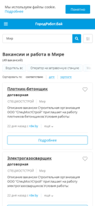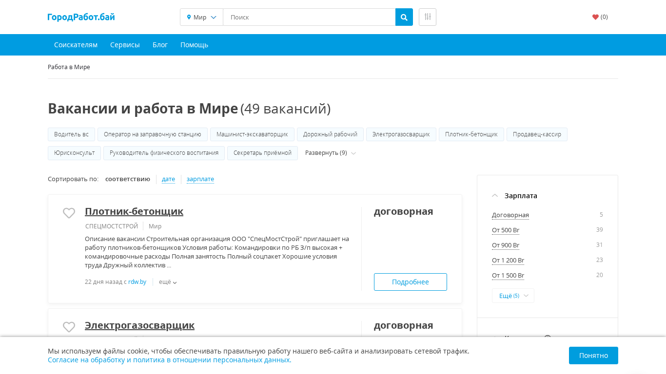 | Название / Заголовок | Вакансии и работа в Мире | Поиск работы с ГородРабот.бай |
