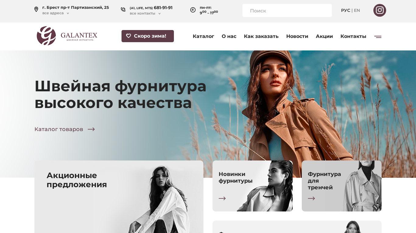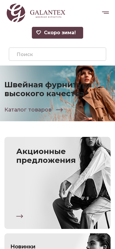 | SEO-описание | Компания Galantex предлагает широкий ассортимент швейной фурнитуры, товаров для шитья и рукоделия. Возможна покупка оптом. Заказ товара по телефону. |