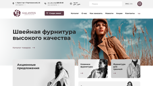 | AI-анализ | The website is a Belarusian e-commerce platform specializing in the sale of sewing machinery and accessories. The company Galantex offers a wide range of sewing supplies and crafting materials with the option to purchase in bulk. The website provides a phone number for orders. The domains of the company's offices are listed in Brest, Minsk, and Grodno. The website is available in both Russian and English languages. The catalog section offers various categories such as fabrics for mask production, decorative elements, and sewing notions. The company prides itself on providing high-quality sewing supplies and excellent customer service. The website also features information on company partnerships and contact details for each location. The business hours for ordering are listed as Monday to Friday, 9 AM to 5 PM. The website is accessible via the domain galantex.by. |