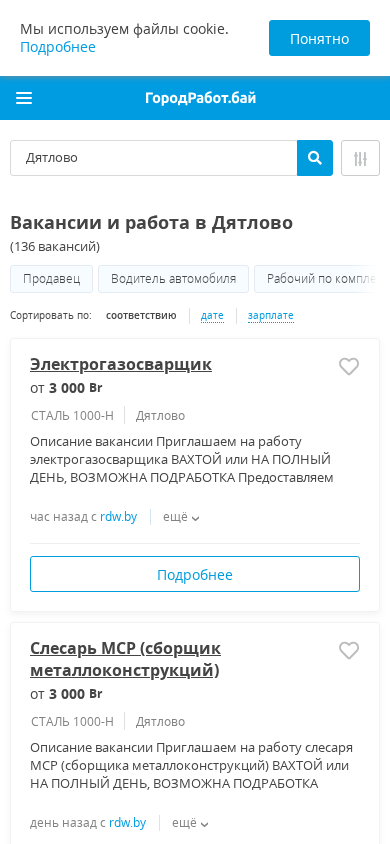 | SEO-описание | Ищете работу в Дятлово (Гродненская область)? На нашем сайте Вы найдете более 136 свежих вакансий от прямых работодателей. Быстрый и удобный поиск вакансий с ГородРабот.бай |