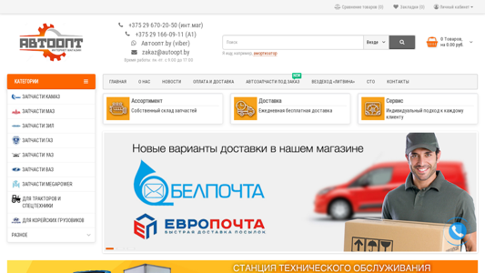 | Название / Заголовок | Автоопт - запчасти МАЗ, ГАЗ, КАМАЗ, ЗИЛ, УАЗ, ВАЗ, HYUNDAI, KIA. Запасные части в наличии и под заказ. Доставка по РБ. Гарантия. ☎ +375 29 166-09-11 |