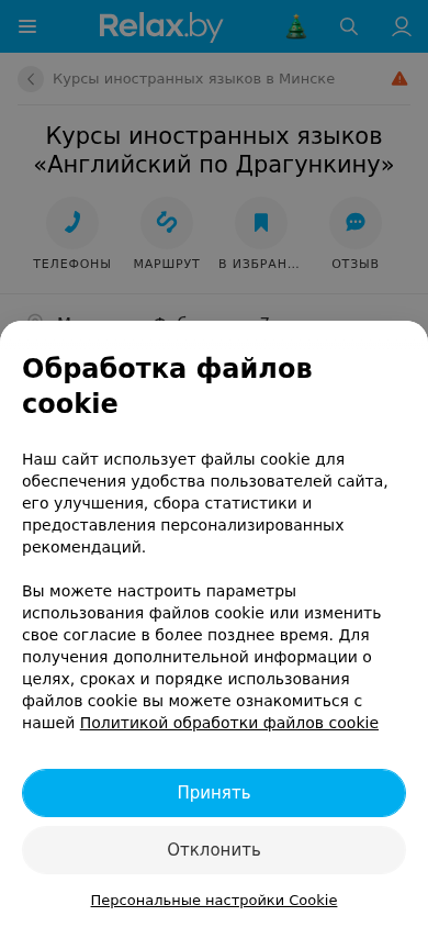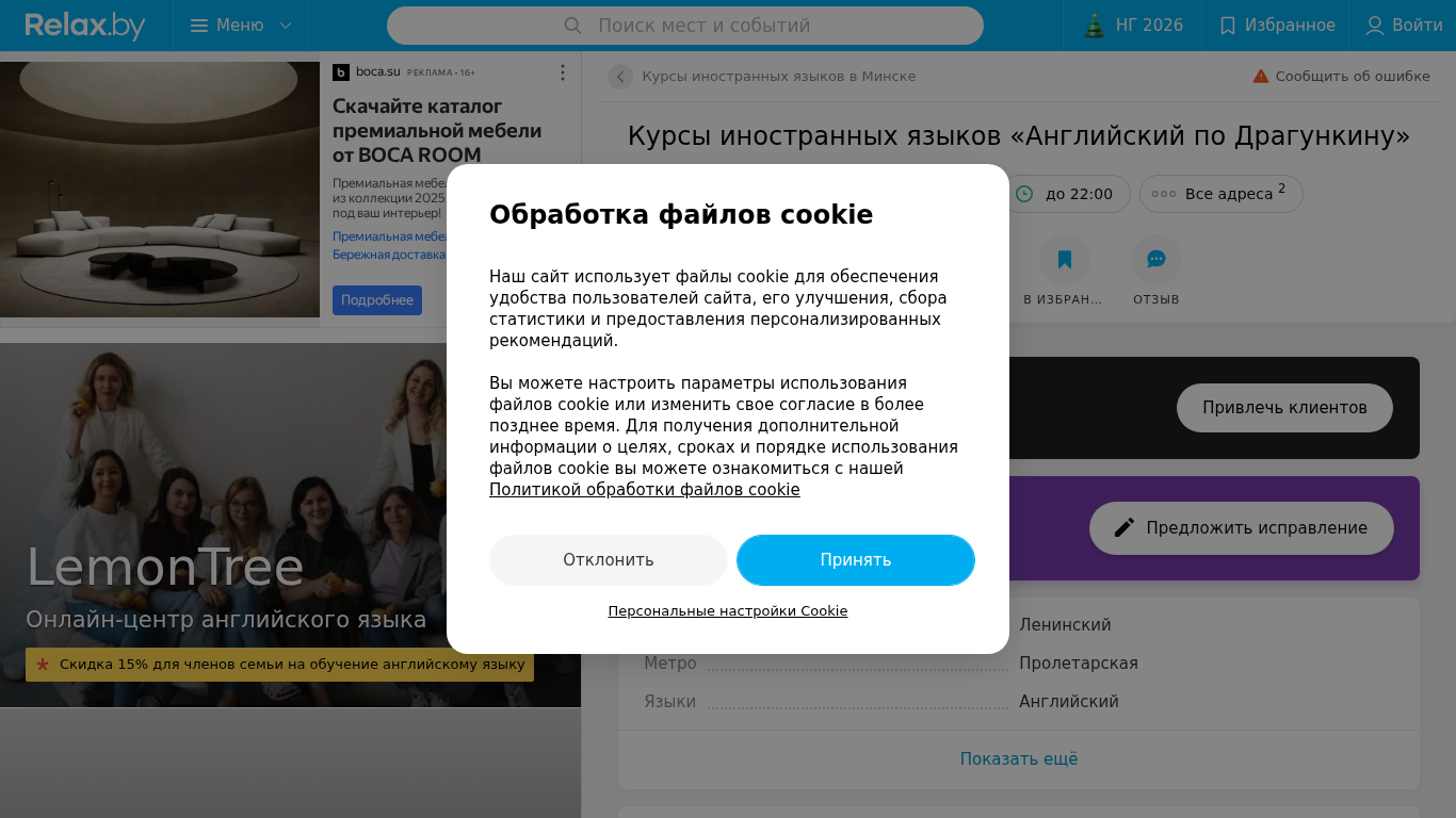 | SEO-описание | Курсы иностранных языков Английский по Драгункину в Минске – отзывы, телефоны, график работы и карта проезда на Relax.by |