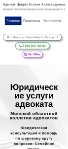 | AI-анализ | The portal is a legal consultation and assistance website for a Belarusian lawyer named Ксения Александровна Цвирко. The website offers a wide range of legal services including family law, administrative law, criminal law, housing law, land law, corporate law, and consultation. The website displays the lawyer's contact information, including a phone number and Viber chat, as well as her office location in Minsk. The website is part of the Minsk Regional Bar Association of Advocates and displays a license number. The website allows users to search for an attorney by name, location, and type of legal case. Users can also submit a question to the attorney through an online form. The website is available at lawjur.by. |