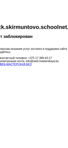 | SEO-лексика | сайт mxk skirmuntovo schoolnet заблокирован вопросам оказания услуг хостинга поддержки сайта обращайтесь контактный телефон 375 389-43-17 электронная почта info web-masterskaya |