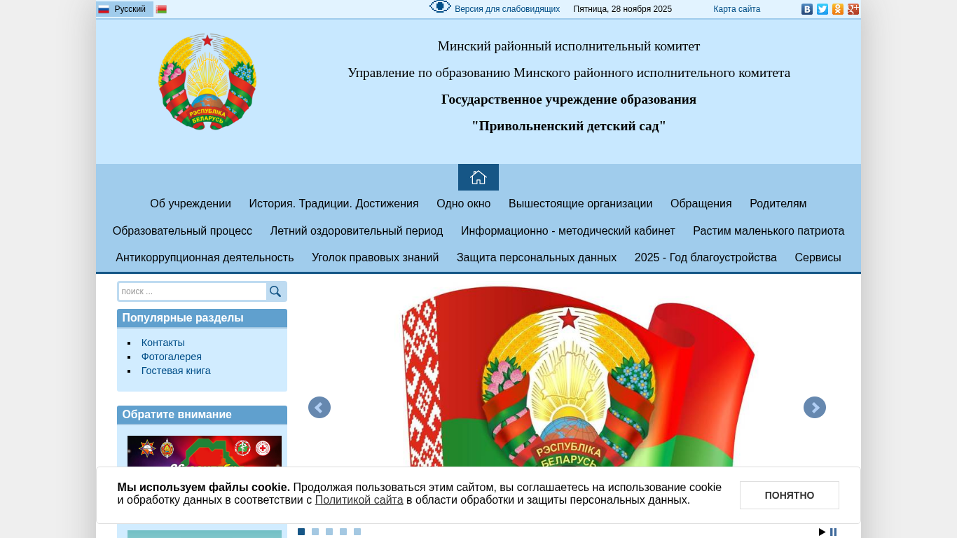 | AI-анализ | --- This online resource is the official website of the "Privolnyensky Kindergarten," a state educational institution located in the city of Minsk, Belarus. The site provides information about the kindergarten, its history, traditions, achievements, and educational process. It includes sections on the organizational structure, enrollment, and contact details. The site is available in both standard and accessible versions for visually impaired users. The kindergarten has 93 students and operates from 7:30 AM to 6:00 PM, Monday through Friday. The site includes a photo gallery, guestbook, and popular sections on the state's symbolism, the kindergarten's milestones, and services offered. The site also features a contact form, social media links, and news updates. The domain name is "du-privolnyj.minsk.edu.by |