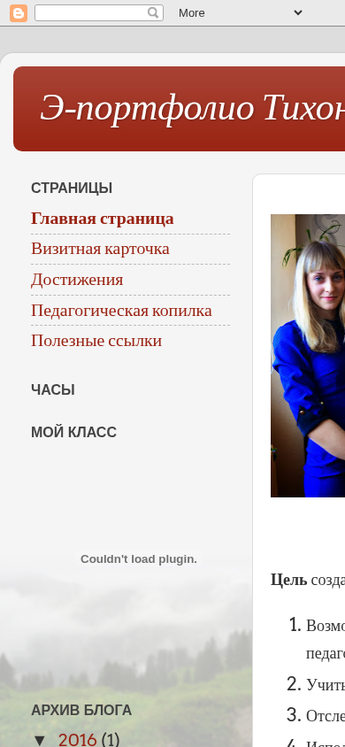 | AI-анализ | The website is an electronic portfolio for Alesya Petrovna Tikhonovich, a teacher at the Gaтовskaya School. The homepage greets visitors and introduces the portfolio owner as Alesya Petrovna Tikhonovich, a teacher at the Gaтовskaya School. The website includes sections for her profile, achievements, pedagogical resources, and useful links. |