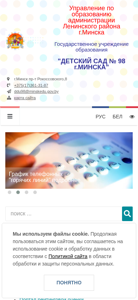 | AI-анализ | The portal "Детский сад №98 г.Минска" (Minsk Kindergarten No. 98) is a government educational institution website based in Minsk, Belarus. The site provides information about the kindergarten's administration, deputies, and contact details, including a map of the site. Visitors can find details about the admissions process, administrative procedures, and can submit questions electronically. The site also offers popular queries and a rating assessment. The kindergarten's leadership, structure, tasks, and functions are outlined, along with conditions for admission, and a description of the institution's team. The site includes information on the state's symbolism, public organizations, and informational activities. There are sections on the kindergarten's life, emergency services, and a cafeteria menu. The site also offers a corner for corrective-ped |