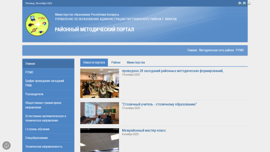 | AI-анализ | The web project "РАЙОННЫЙ МЕТОДИЧЕСКИЙ ПОРТАЛ" is a regional educational portal, published on November 28, 2025. The website is available in Russian, English, and Belarusian languages. The most frequent keywords associated with the project are "румо" (region), "открытых" (open), "уроков" (lessons), "планы" (plans), "ноября" (November), "районный" (regional), "методический" (methodical), and "учителей" (teachers). The project also mentions "разработки" (developments) and "фестиваля" (festival). The domain name is mp-parue.minskedu.gov.by. |