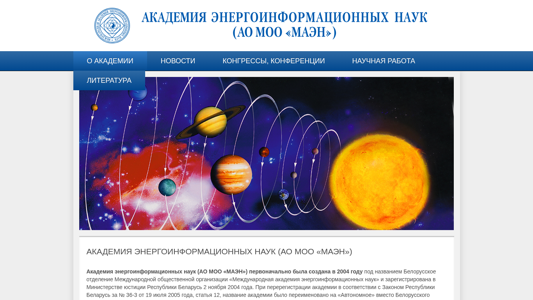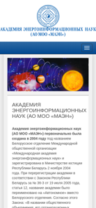| AI-анализ | This online resource is the website of the Academy of Energy Information Sciences (AO MOO "MAEN") in Belarus. It was originally established in 2004 under the name of the Belarusian branch of the International Public Organization "International Academy of Energy Information Sciences" and was registered with the Ministry of Justice of the Republic of Belarus on November 2, 2004. Upon re-registration in accordance with the Law of the Republic of Belarus No. 36-3 from July 19, 2005, the name of the academy was changed from "Belarusian branch" to "Autonomous". In accordance with this law, the words "Republic of Belarus", "Belarus", "Belarusian", "national", and "popular" are not allowed in the name of a public organization |