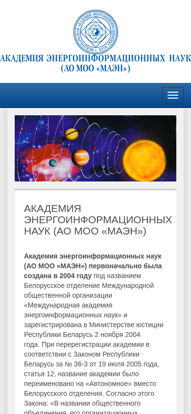 | Название / Заголовок | О АКАДЕМИИ - Академия Энергоинформационных Наук |