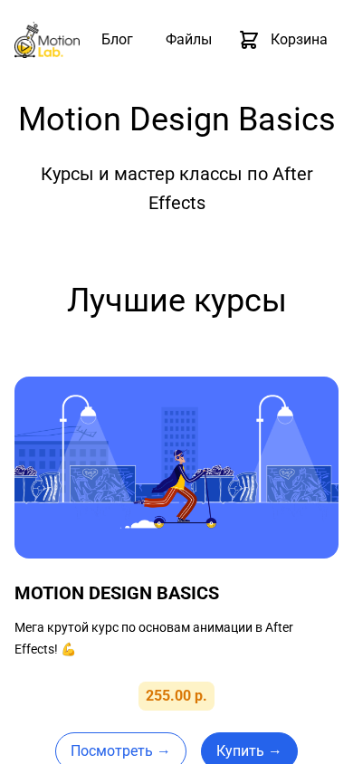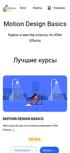 | AI-анализ | The website Motionlab.by is an e-commerce platform specializing in selling courses and master classes related to motion design and animation using Adobe After Effects software. The site offers various courses and master classes with titles such as "Motion Design Basics," "Animation and Illustrations," "Animation of a Character," and "Animation Glitch." The courses range from introductory level to advanced techniques and are priced differently. Additionally, the website provides access to various downloadable files, a shopping cart, and information about the company, including its registration details and contact information. |