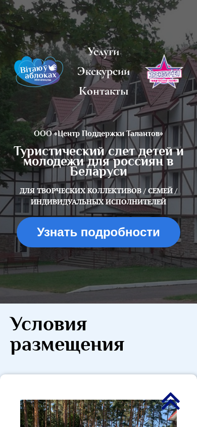 | AI-анализ | This website is dedicated to the first travel event in Belarus, the 'Academy of Winners' Tourist Rally, which will take place from May 3 to May 6, 2025, at the Kruтой Yar recreational complex. The event is a combination of a creative retreat and a talent festival, celebrating unity of national cultures and marking the 80th anniversary of the Great Victory. The website provides information on accommodation, infrastructure, food, creative program, and excursion options for participants. The event is open to various artistic collectives, families, and individual performers. Participants will spend four days and three nights in the Kruтой Yar recreational center, with shared accommodations available. Amenities include a covered swimming pool, fitness center, outdoor workout zone, sauna and bath, therapeutic procedures, and an hippodrome |