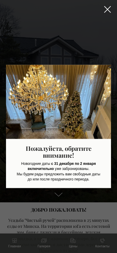| AI-анализ | This website is for a guesthouse named "Чистый ручей" (Clear Stream), located 25 minutes from Minsk. The property features a guest house, a sauna with a hot tub and a swimming pool, a children's playground, and a picturesque lake surrounded by coniferous and deciduous trees. The guest house has a living room with impressive 9-meter high ceilings, a fireplace, and a TV, as well as a fully-equipped kitchen. The house has four comfortable bedrooms with private bathrooms, each equipped with personal hygiene items, towels, a fan, and a washing machine. The bedrooms have access to a terrace. The house can accommodate 13 guests and has Wi-Fi. A sauna, 120 sq.m in size, is located near the guest house and includes a steam |