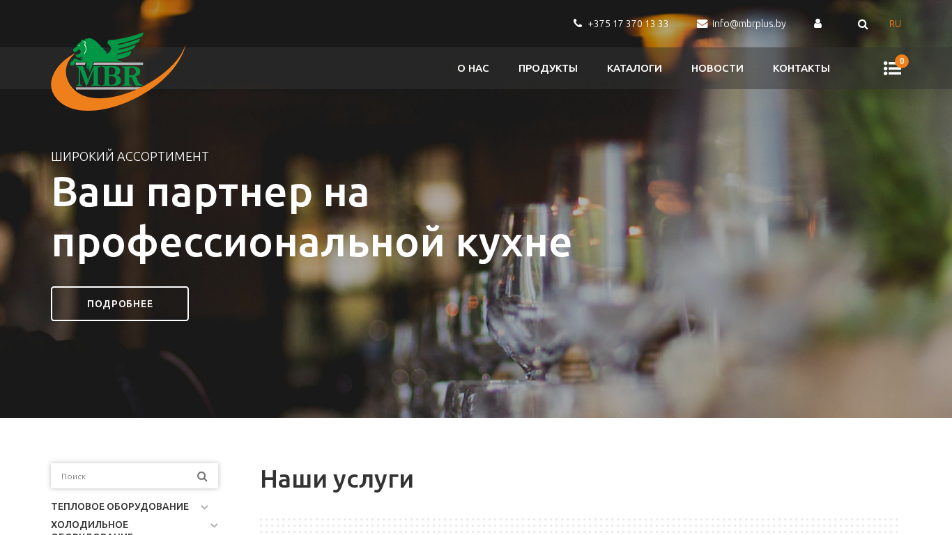 | AI-анализ | --- This website is the official representative of Rovabo in Belarus, under the name MBR Plus. It offers a wide range of professional kitchen equipment including thermal, refrigeration, pizza ovens, ventilation systems, coffee machines, and electrical appliances. The website provides detailed product information and catalogs, as well as consulting, project design, installation, and maintenance services. Brands represented include MKN, Wiesheu, Hällde, Granuldisk, and Joni. |