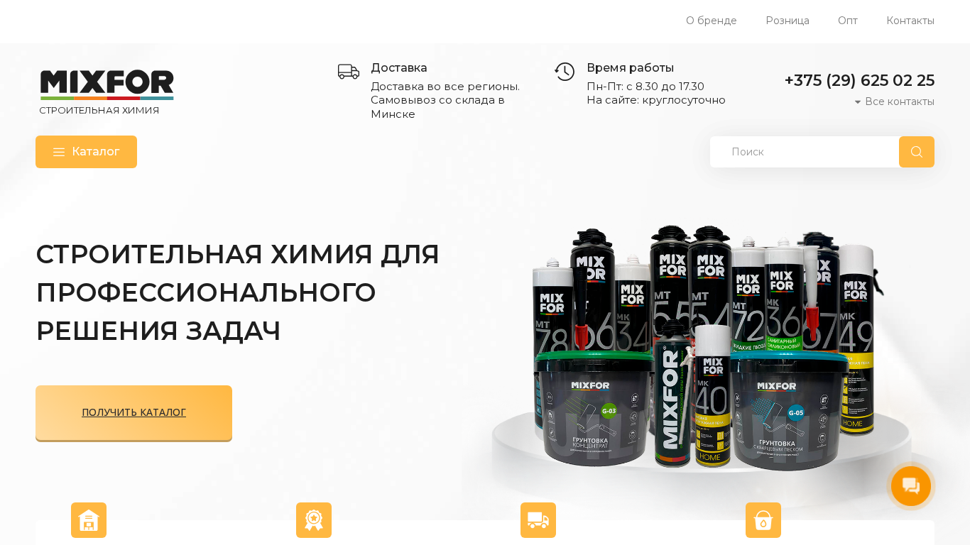 | AI-анализ | The web project MIXFOR is a construction chemistry online store offering various building materials for professional use. The site provides information on their brand, product categories, and contacts. The key product offerings include mounting pens, clay pens, germetics, clay germetics, liquid nails, and pen cleaners. The site also offers a catalog, delivery services to all regions, and self-pickup at their Minisk warehouse. The business hours for pickups are Monday to Friday from 8:30 AM to 5:30 PM, and the site is open 24/7 for online orders. Customers can contact them via phone or email for inquiries, and there is an option for online consultations through messengers. The site boasts a wide assortment of products, with 99% of items in stock at their Minisk location, and guarantees European quality and operational delivery. Free |