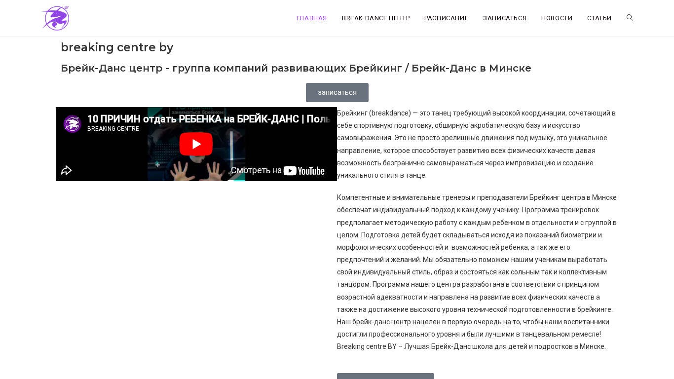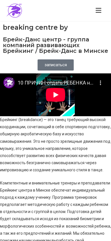| SEO-описание | Break Dance центр, Минск. Профессиональное обучение олимпийскому виду спорта BREAKING, группы для детей от 4 до 16 лет. |