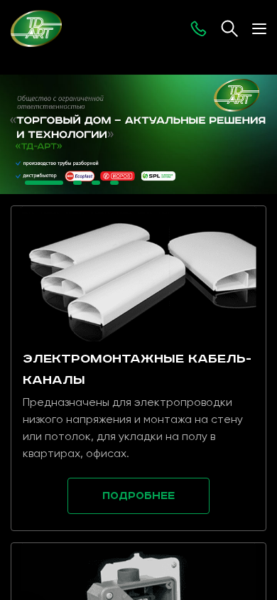 The website td-art.by is an e-commerce platform for selling electrical installation products such as cable channels, boxes, columns, and tubes. It offers both metallic and plastic options for internal and external installation, including versions for insulated facades and flooring systems. The website also provides free shipping within Belarus and offers three contact phone numbers and an email address for inquiries. Products can be ordered through an online form, where users must provide their name, email, and phone number, and agree to the processing of their personal data. The website also features two videos and a blog about mounting tubes. The legal address of the company is in Belarus, with a postal address in Minisky r-n, ag. Kolodishchi. The website is owned by OOO «ТД-Арт» and was made by It-land.by.