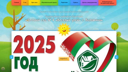 | AI-анализ | The web project "Детский сад № 4 «Веселый улей» г. Воложина" (Preschool No. 4 'Merry Bee' of Volozhin City) is an educational institution website dedicated to providing information about a preschool in Volozhin, Belarus. Key topics on the site include the preschool's mission, schedule, structure, news, admission process, and staff. The site also features interactive elements, such as an interactive map and a rating portal. The preschool offers various educational programs and activities, including music, sports, and arts. Users can find information on fees, contact details, and administrative procedures. The site also includes a blog, a news section, and a section for parents with useful resources and information. The preschool is part of the Volozhin Educational Governance and is subject to various educational |