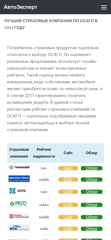 | Название / Заголовок | Рейтинг страховых компаний по ОСАГО 2023 |