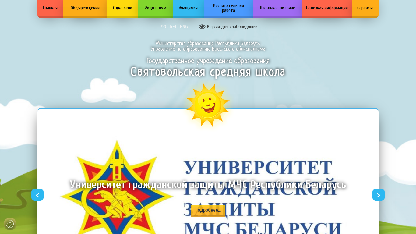 | Адрес | школа", Сокращенное название:, ГУО, "Святовольская средняя школа", Юридический адрес:, аг. Святая Воля, ул. Шоссейная, 47а |