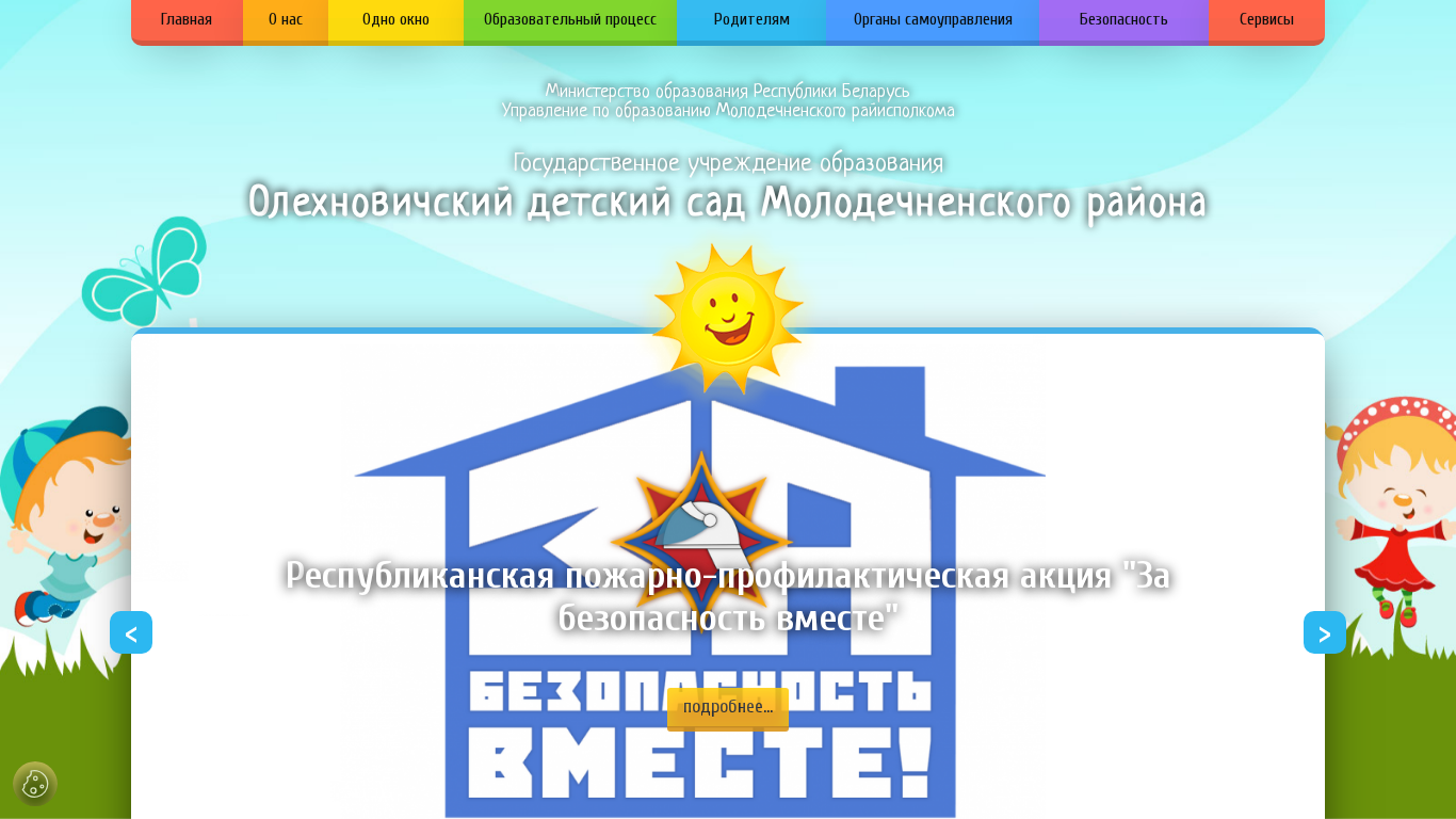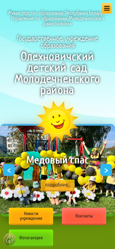 | AI-анализ | --- This website is for Олехновичский детский сад (Olekhovich Kindergarten) in Молодечненского района (Molodechno District), Belarus. The title and description include keywords like 'учреждения' (establishment), 'образования' (education), 'подробнее' (in detail), 'молодечненского' (Molodechno), 'района' (district), 'безопасность' (safety), 'дошкольного' (kindergarten), 'контакты' (contacts), 'новости' (news), and 'фотогалерея' (photo gallery). The website covers various topics related to the kindergarten's mission, leadership, staff, documents, news, history, union activities, ide |