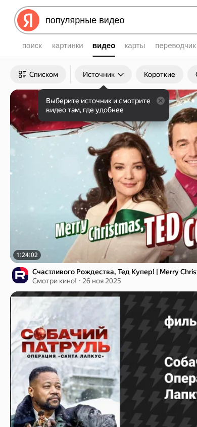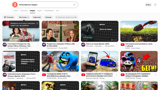 | AI-анализ | The portal video.yandex.by is a search engine for videos. It displays the results of a search for "popular videos" in Yandex, with a total of 82 videos found. The videos include Merry Christmas, Ted Cooper! (2025), A Merry Little Ex-Mas (2025), Охота за тенью (film, 2025), and They Found Golden Coins Walking with a Dog (2025), among others. The videos have varying durations and were published on different dates. The portal is called "Filmach" and offers films and series online. |