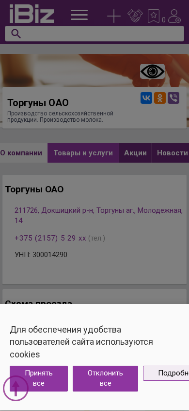 | Название / Заголовок | Торгуны ОАО - Производство сельскохозяйственной продукции. Производство молока.. 211726, , Торгуны аг., Молодежная, 14 |