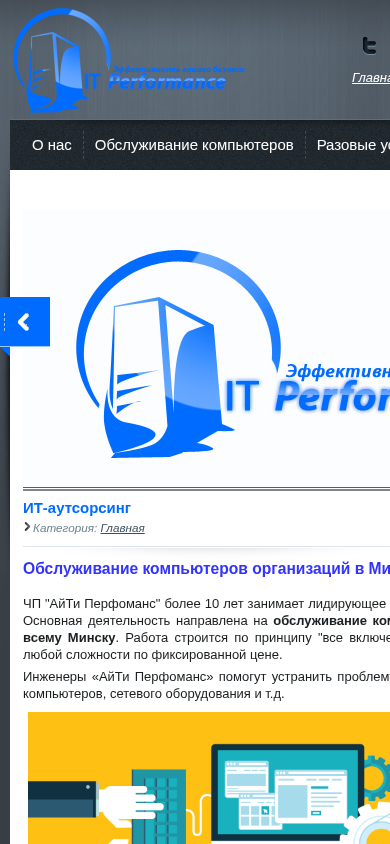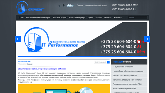 | Название / Заголовок | IT-Performance - абонентское обслуживание компьютеров, настройка серверов , удаление вирусов и другое |