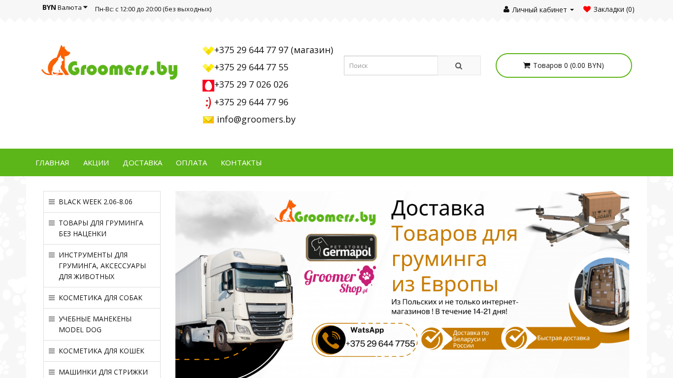 | SEO-описание | Товары для грумеров и животных оптом и в розницу. Большой выбор косметики для животных. В нашем интернет-магазине представлены ТМ Moser, Wahl, Artero, Iv San Bernard, Andis, White Rose, Komondor, Milord и многие другие. |