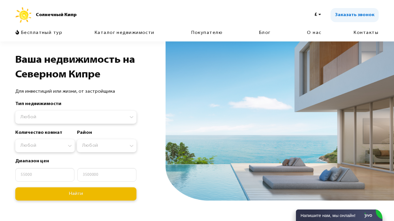| AI-анализ | The website Cyprus Sun offers real estate listings in various types and sizes in different locations on the island of Cyprus. Keywords associated with the site include 'Cyprus', 'property', 'apartments', 'houses', 'villas', 'townhouses', 'rental', 'purchase', 'prices', 'Northern Cyprus', and 'services'. The site includes options for a free tour, catalog of properties, process of buying, costs, taxes in Northern Cyprus, financing and legal services, as well as information on investment, visas, and blog. Properties listed range from studios to larger multi-bedroom units, in areas such as Alsandjaq, Arapkoj, Bahcheli, Bellaapaiss, Boaz, Gechtikale, Güzelyurt, Iztenlik, Iskel, Yeni |