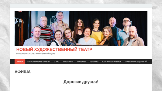 | Название / Заголовок | АФИША - НОВЫЙ ХУДОЖЕСТВЕННЫЙ ТЕАТР |