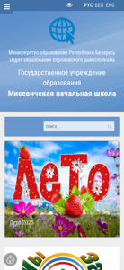 | AI-анализ | The web project "Мисевичская начальная школа" (Misevnsh) is a Belarusian educational institution website located at misev.voronoo.gov.by. The title of the website is "Мисевичская начальная школа" (Misevichskaya nauchnaya shkola), which translates to "Misevich Primary School". The description section provides information on the school's location, address, and version for visually impaired individuals in Russian, Belarusian, and English languages. The top words on the website indicate that it relates to education, with keywords such as "школа" (school) and "образования" (education) appearing frequently. Other common terms include "мисевичская" (Misevich), "начальная" (primary), and various school-related words. |