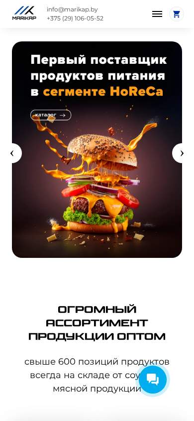 This online resource is a distributor of food products in Belarus under the brand name OOO "Marikap" - Exclusive Food Distributor. The website offers over 600 product items ranging from frying oil to meat products. The product categories include frying oil, potato products, sauces and mayonnaises, frozen semi-finished products, frozen vegetables and fruits, fast food products, meat products, canned vegetables, fish and seafood, and household items. The company has direct contracts with manufacturers and extensive experience in serving the HoReCa segment, ensuring competitive prices.