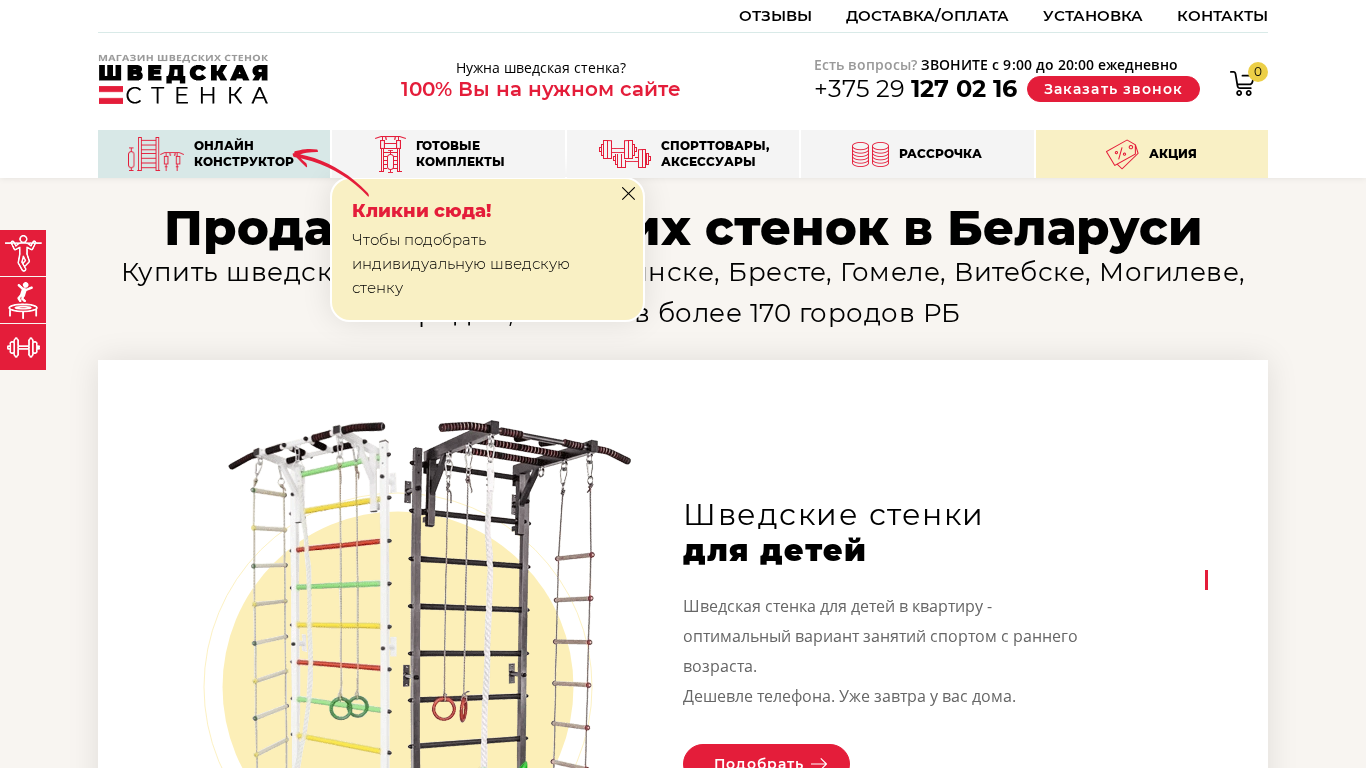 | SEO-описание | Шведские стенки в интернет магазине: более 500+ вариантов• Установка • Доставка по РБ • Рассрочка • Акции и распродажи. Металлические, деревяные, усиленные, детские покупайте у нас! |