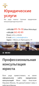 | SEO-описание | Юридическая Консультация в Минске. Бесплатная онлайн и платная по телефону и письменно. Консультация юриста также осуществляется по Беларуси! |