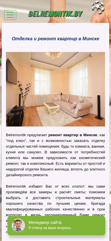 | Название / Заголовок | Отделка и ремонт квартир в Минске | Цена | Под ключ | Отделочные работы | Фото - belremontik.by |