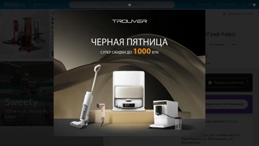 | SEO-описание | Панорамный кафе-бар Graf Сafe (Граф Кафе) в Минске – ⚡меню с ценами и фото, ⚡отзывы посетителей, адрес на карте, ✍бронирование столика онлайн на Relax.by. |