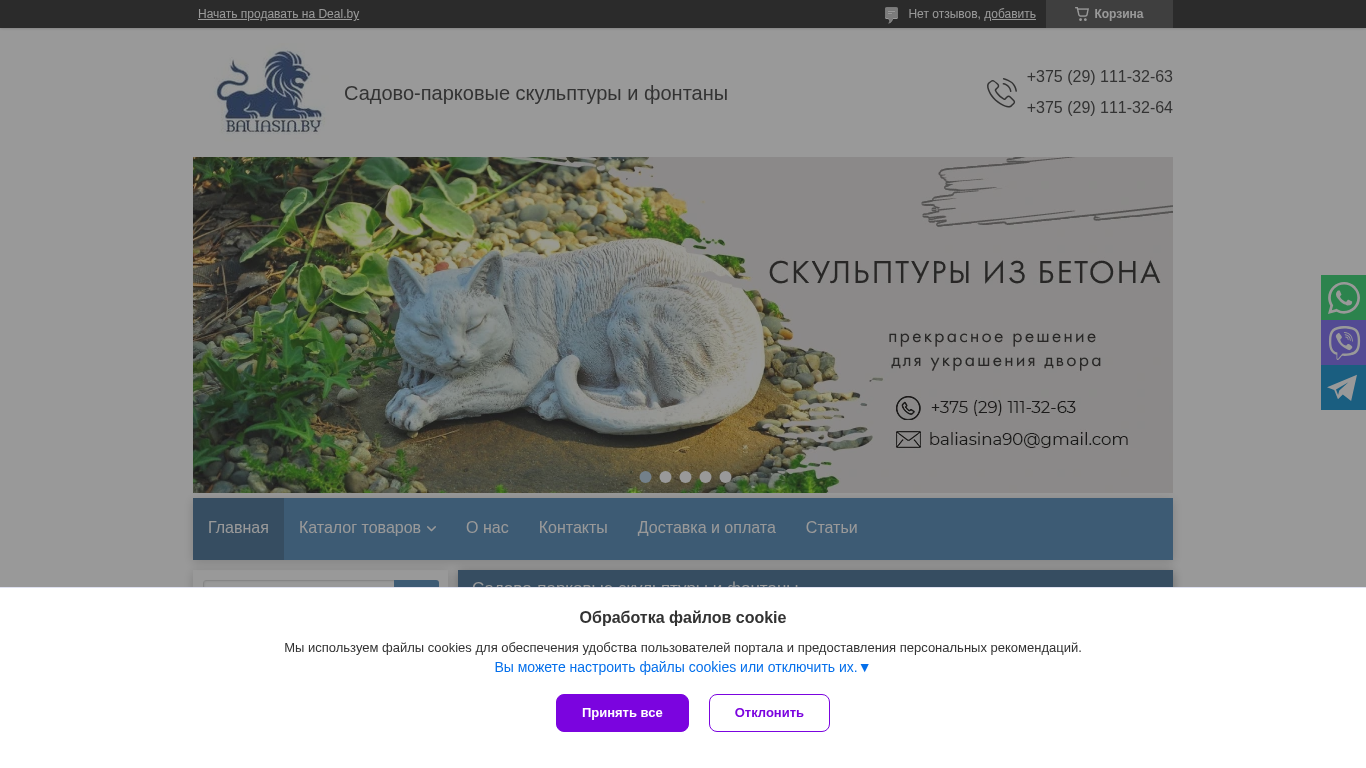 | SEO-описание | Изготовление скульптур из бетона для садово-паркового ландшафта и балясин в Барановичах с доставкой по Беларуси. Цены и ассортимент смотрите на сайте.Телефон для справок +375 (29) 111-32-63 Анастасия |