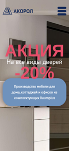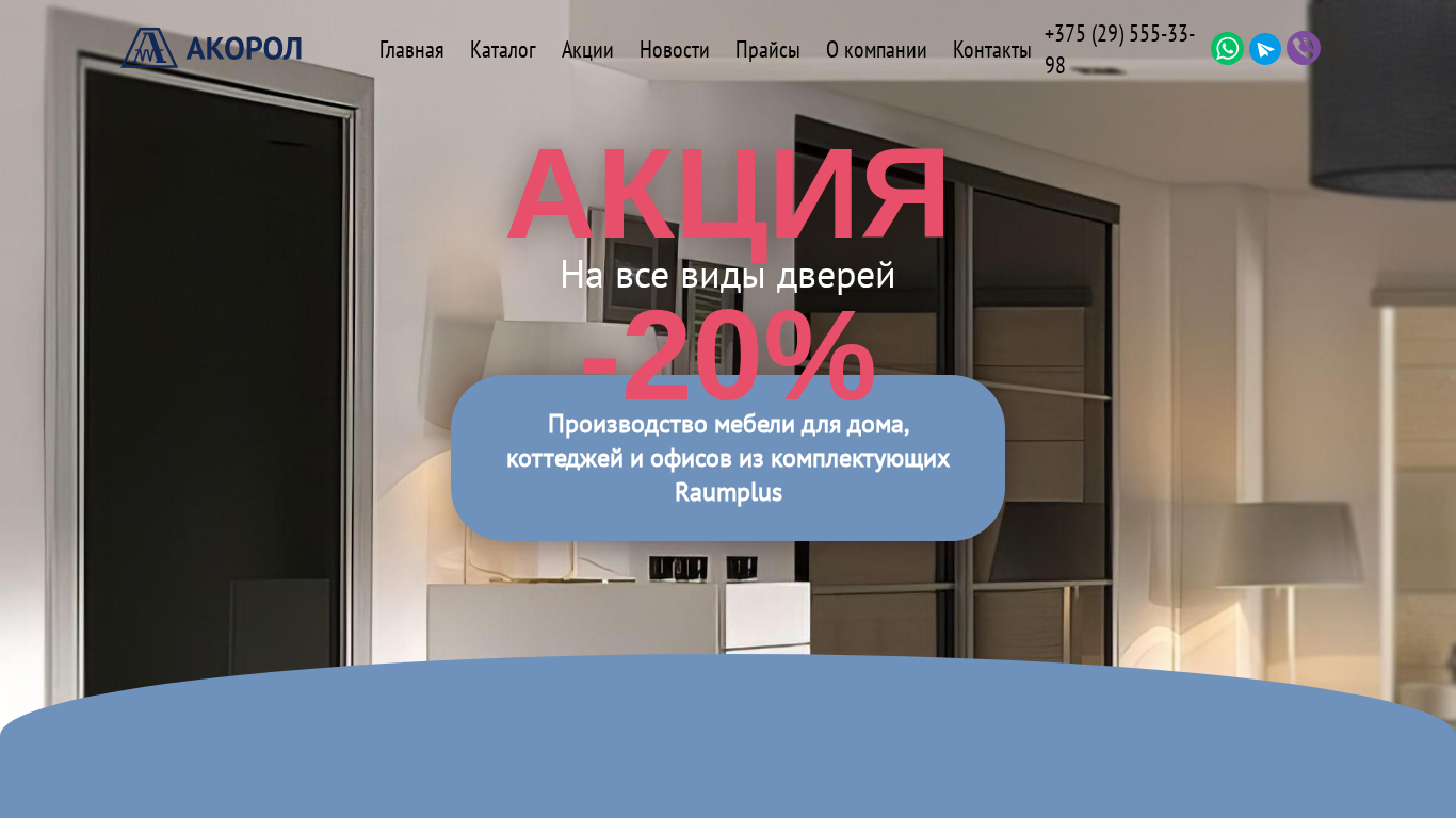 | AI-анализ | --- This online resource is a furniture store based in Minsk, Belarus, offering custom-made furniture for sale. The website features a wide range of materials for customers to choose from and boasts short production times. Products include kitchens, wardrobes, office furniture, and room dividers from the producer Raumplus. The site also offers sliding, folding, and sliding doors from the Raumplus system, as well as Herkules hanging door systems from VALCOMP in Poland. The website includes a catalog, company information, and contact details with a phone number for +375 (29) 555-33-98. The site is an official distributor of Raumplus components in Belarus and offers individual solutions for each client. A current promotion offers a 20% discount on all door types. |