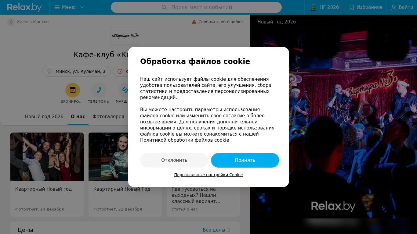 | SEO-описание | Кафе-клуб Квартира №3 в Минске – отзывы, адрес на карте, телефоны, график работы и карта проезда на Relax.by |