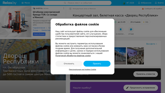 | SEO-описание | Концертный зал, билетная касса Дворец Республики в Минске – отзывы, телефоны, график работы и карта проезда на Relax.by |