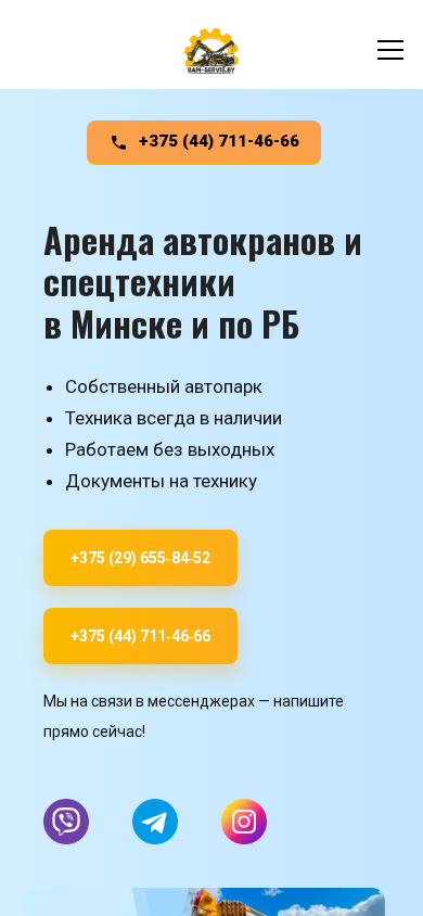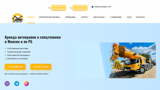 | SEO-описание | Аренда автокранов и спецтехники в Минске. Работаем круглосуточно по городу и области. Разнообразный автопарк кранов до 300 тонн. ☎️ Звоните! |