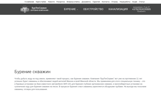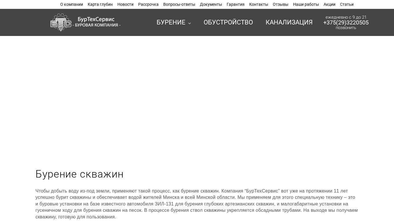 SEO-описаниеБурение скважин на воду🌊💦 в Минске ⭐ Обустройство ➤ Сервисное обслуживание скважин ☝ Гарантия качества. 💳Рассрочка 0%.〖БурТехСервис〗