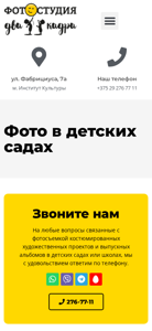 | Адрес | фотосессия в студии, фото в детских садах и школах, подарочные сертификаты, Сообщение, Отправить, Адрес, ул. Фабрициуса, 7а |