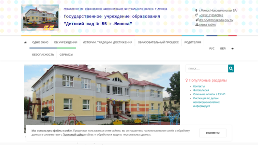 | AI-анализ | --- This website belongs to the State Educational Institution "Detsky Sad No. 55" in Minsk, Belarus. The title is "Детский сад 55" (Children's Kindergarten 55). The description mentions that it is an educational institution under the administration of the Central District Education Administration in Minsk. The website contains information about the kindergarten's location, contacts, hours of operation, and administrative procedures. It also includes links to various regulatory documents and policies, as well as electronic services. The keywords suggest topics related to the kindergarten, its administration, and education in general. The top words indicate common themes such as institutions, Minsk, schedules, and conditions. The website uses cookies and has a link to its data protection policy. |