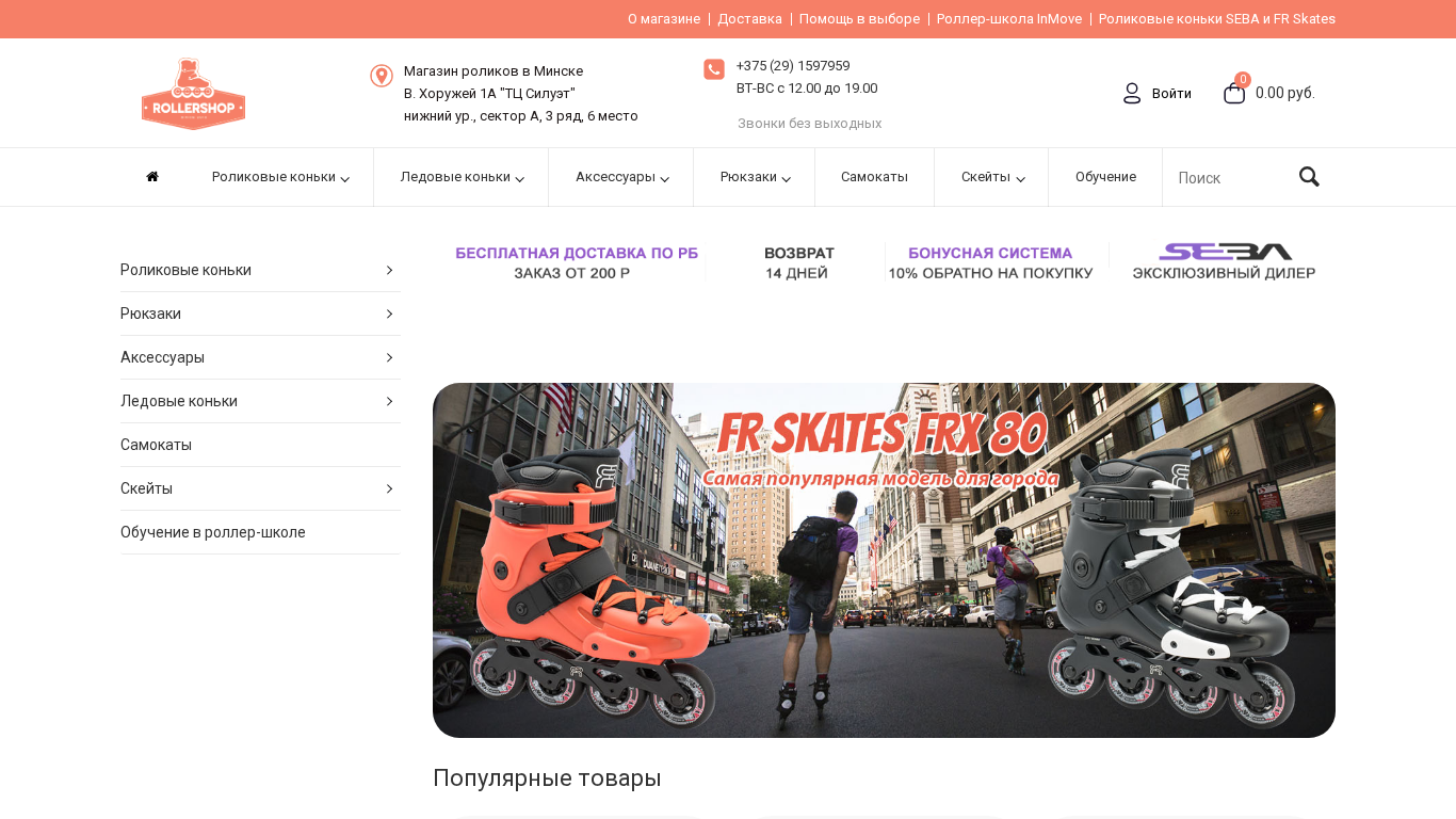 | SEO-описание | Предлагаем большой ассортимент роликовых коньков и аксессуаров по доступным ценам. Гарантия от 1 года. Доставка по всей Беларуси. Покупайте качественные ролики от лучших мировых производителей: FR Skates, SEBA, Powerslide, Rollerblade, Fila, Micro, K2 и др. |