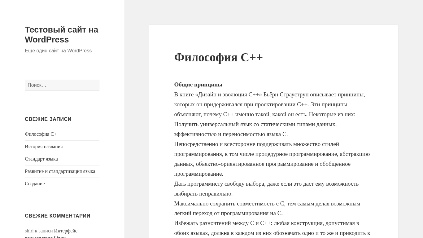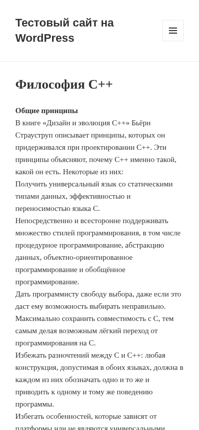 | Название / Заголовок | Тестовый сайт на WordPress | Ещё один сайт на WordPress |