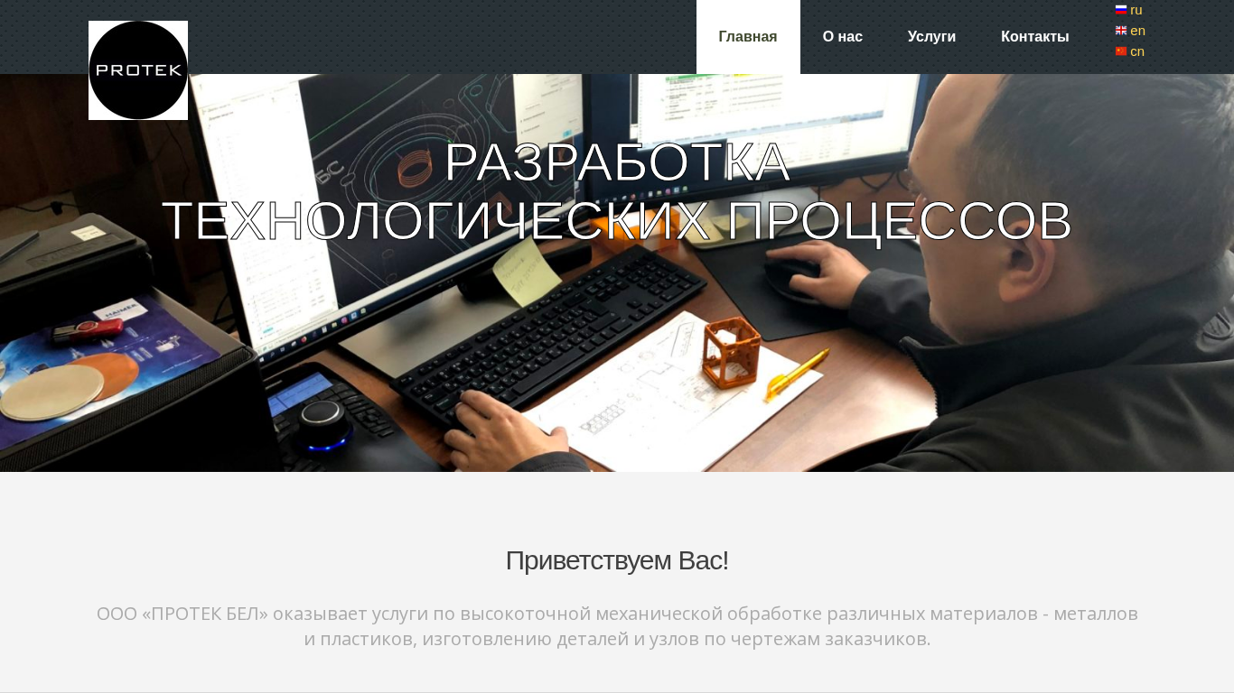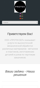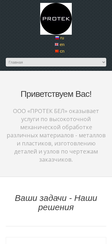 | AI-анализ | language: ru This website is for the Belarusian company ООО «ПРОТЕК БЕЛ», offering metal and plastic material processing services. The title and description highlight their expertise in tolar and frezing, polymeric coatings, and finishing work. The main sections of the site include 'About Us', 'Services', and 'Contacts'. The company provides services in the production of various parts and components based on customer-provided blueprints, including frezing, multi-function machining, and polymeric coating applications. They offer finishing work, such as wet or dry honing, and sleeving, and also provide transportation logistics for material acquisition and delivery of finished products to clients. The contacts section includes phone numbers, email, and physical address, as well as social media links. The website is available in Russian and English, and was last updated in 2 |