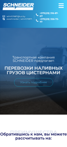 | AI-анализ | --- The web project "Schneider" is a transportation service based in Minsk, Belarus. It specializes in the transportation of liquid goods using tank trucks. The services cover both local and international routes, including Belarus-Russia and Belarus-Lithuania, as well as various destinations within Belarus and the CIS countries. The company offers repairs and maintenance services for light vehicles, including engine oil changes, transmission repairs, and computer diagnostics. The website provides useful information on Volvo codes, tariffs, and contacts. |