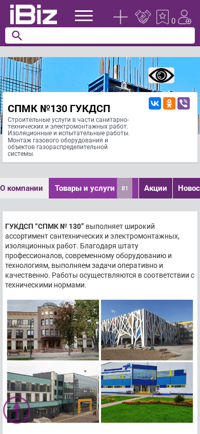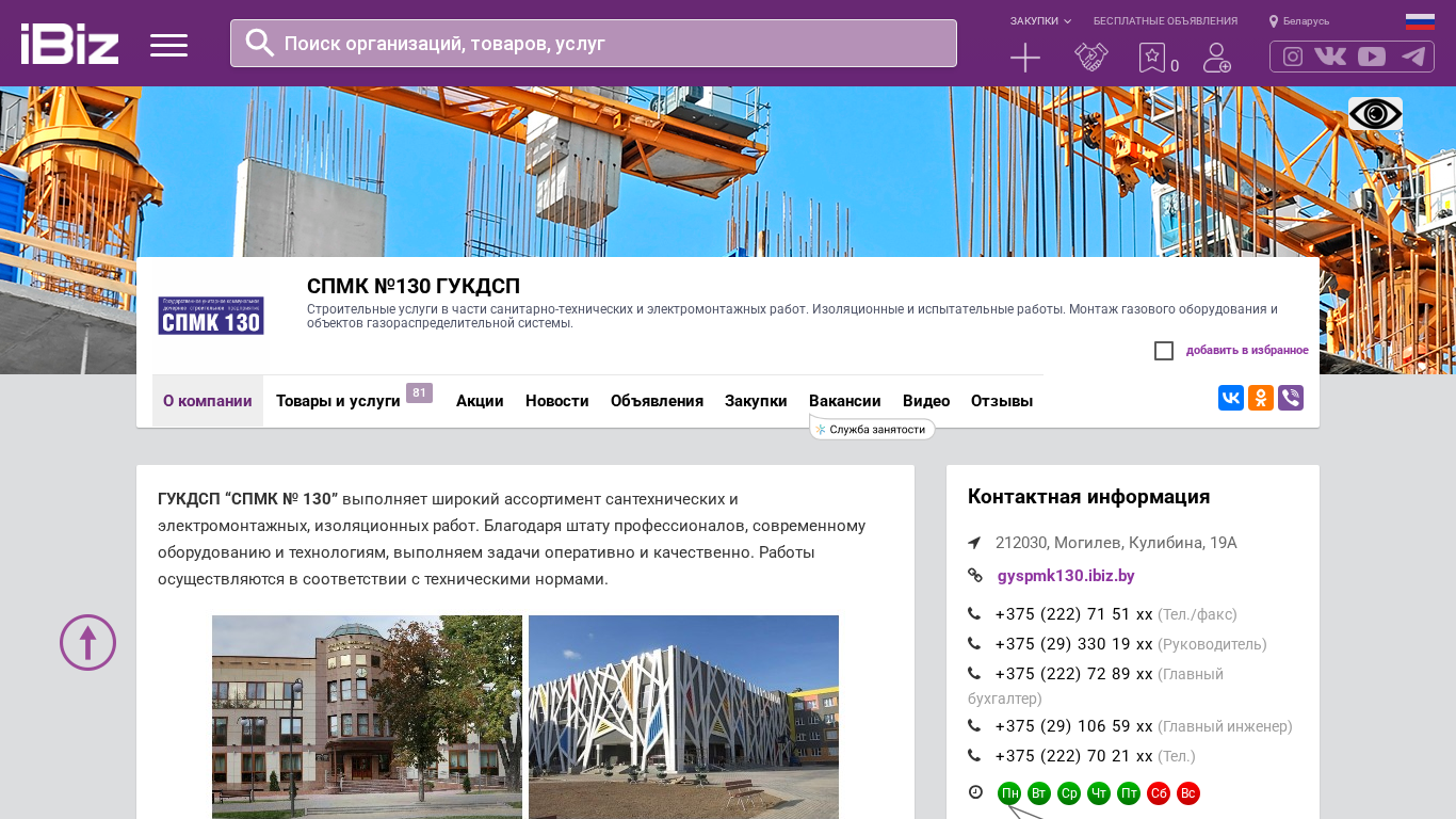 | Название / Заголовок | СПМК №130 ГУКДСП - Строительные услуги в части санитарно-технических и электромонтажных работ. Изоляционные и испытательные работы. Монтаж газового оборудования и объектов газораспределительной системы.. 212030, Могилев, , Кулибина, 19А |